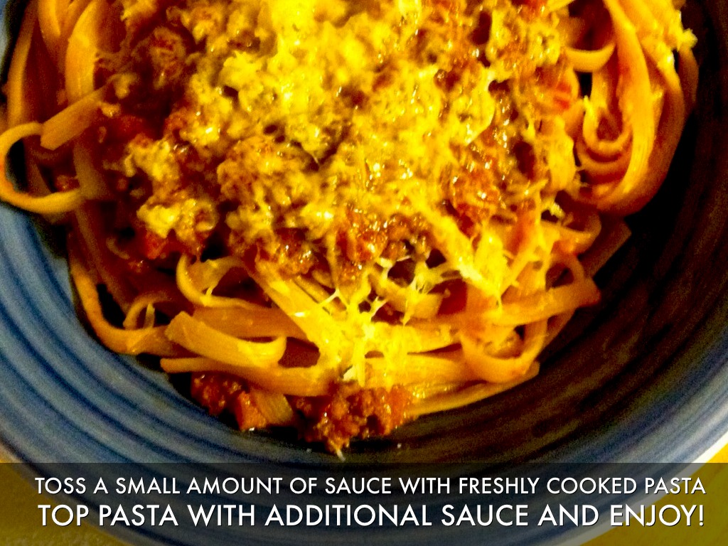 TOP PASTA WITH ADDITIONAL SAUCE AND ENJOY!