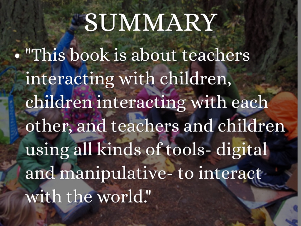 "This book is about teachers interacting with children, children interacting with each other, and teachers and children using all kinds of tools- digital and manipulative- to interact with the world."