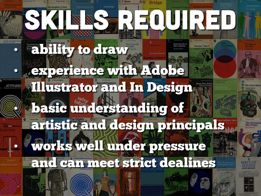 work is done using desktop publishing applications such as Adobe InDesign and Illustrator