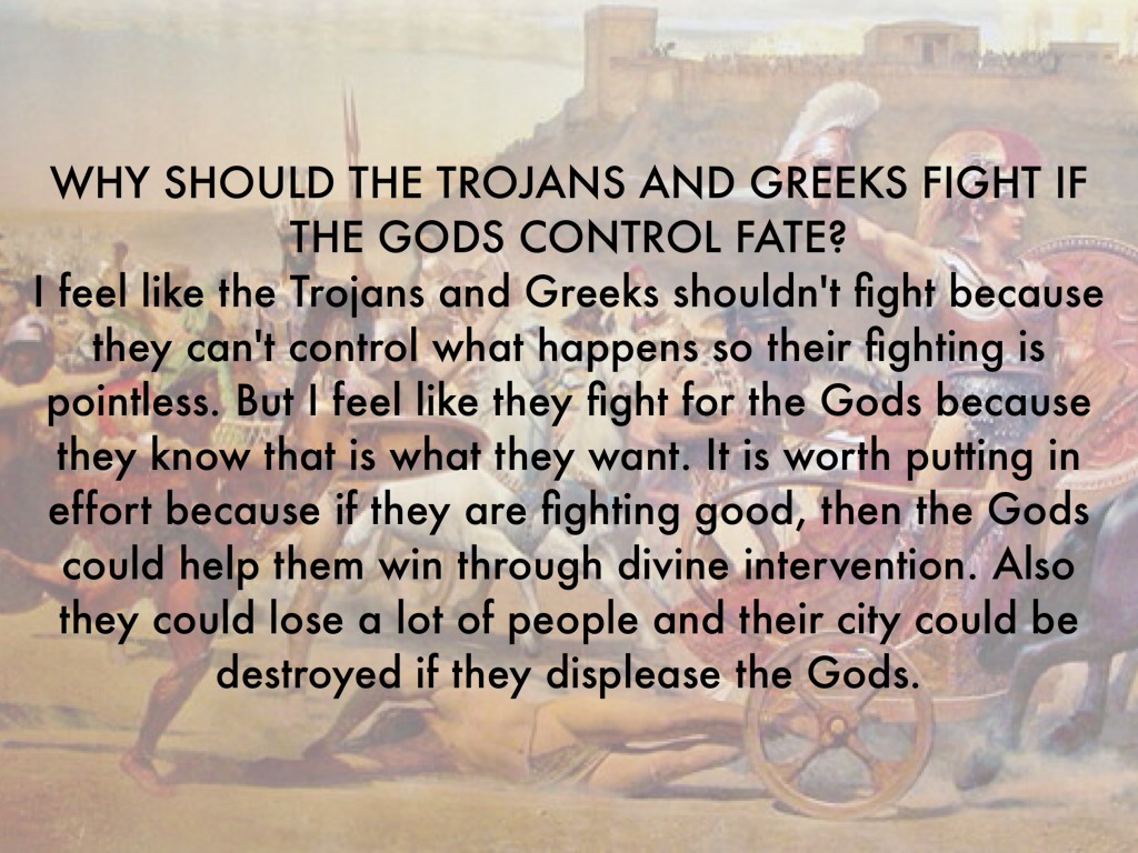 WHY SHOULD THE TROJANS AND GREEKS FIGHT IF THE GODS CONTROL FATE?