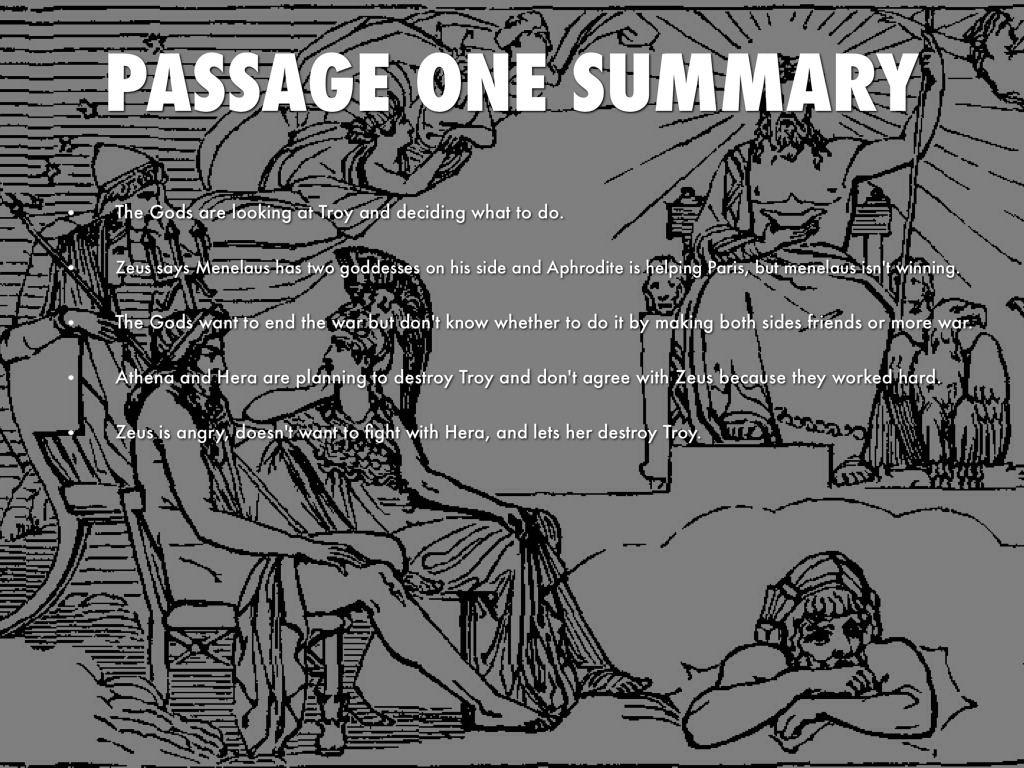 - Zeus is angry, doesn't want to fight with Hera, and lets her destroy Troy.