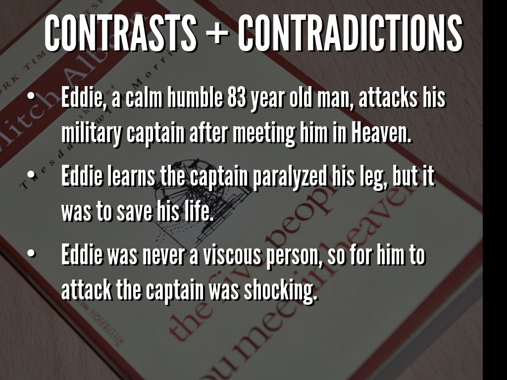 Eddie, a calm humble 83 year old man, attacks his military captain after meeting him in Heaven.