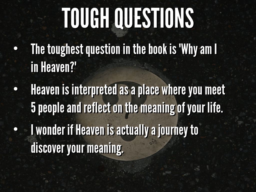 Heaven is interpreted as a place where you meet 5 people and reflect on the meaning of your life.