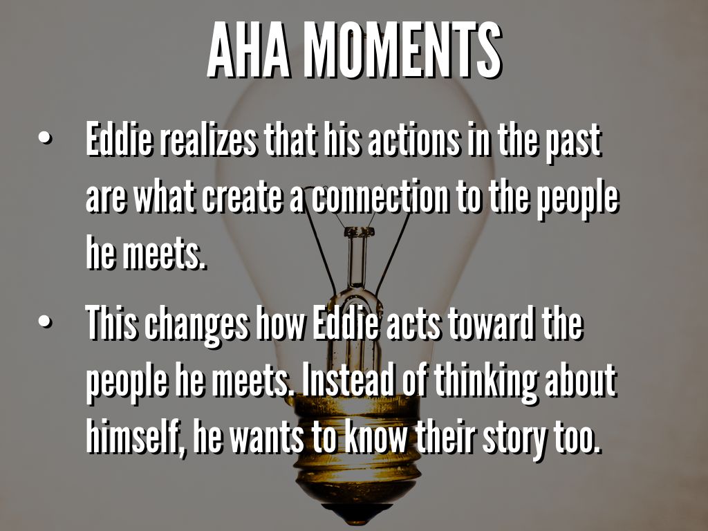 Eddie realizes that his actions in the past are what create a connection to the people he meets.