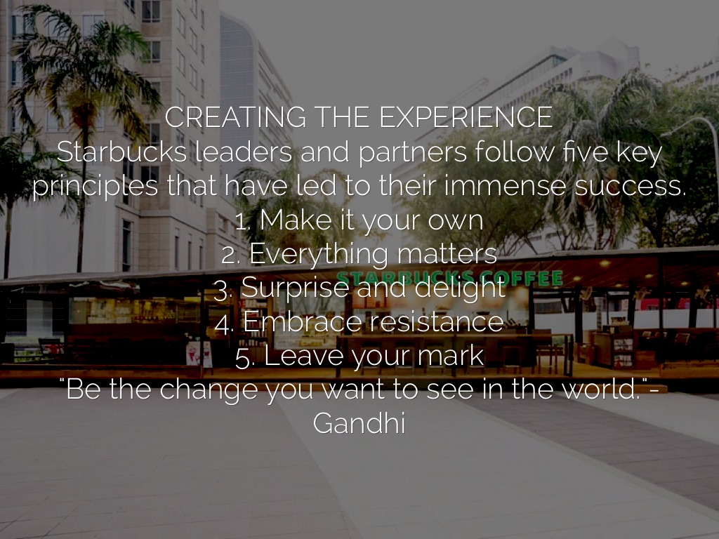Starbucks leaders and partners follow five key principles that have led to their immense success.
