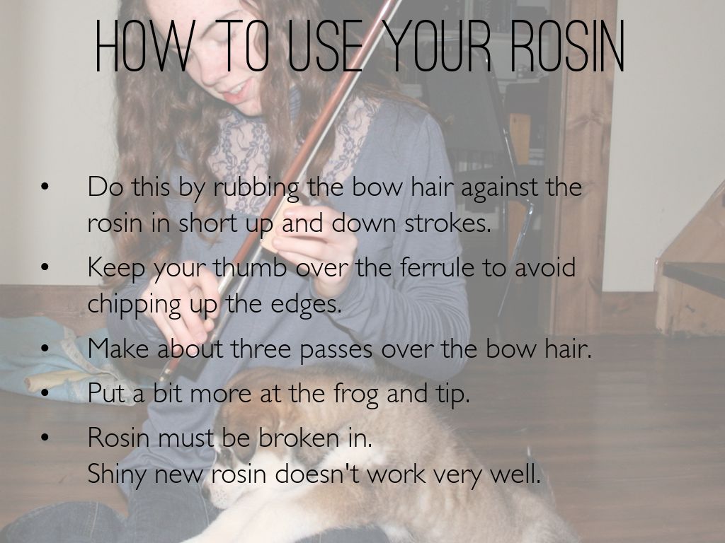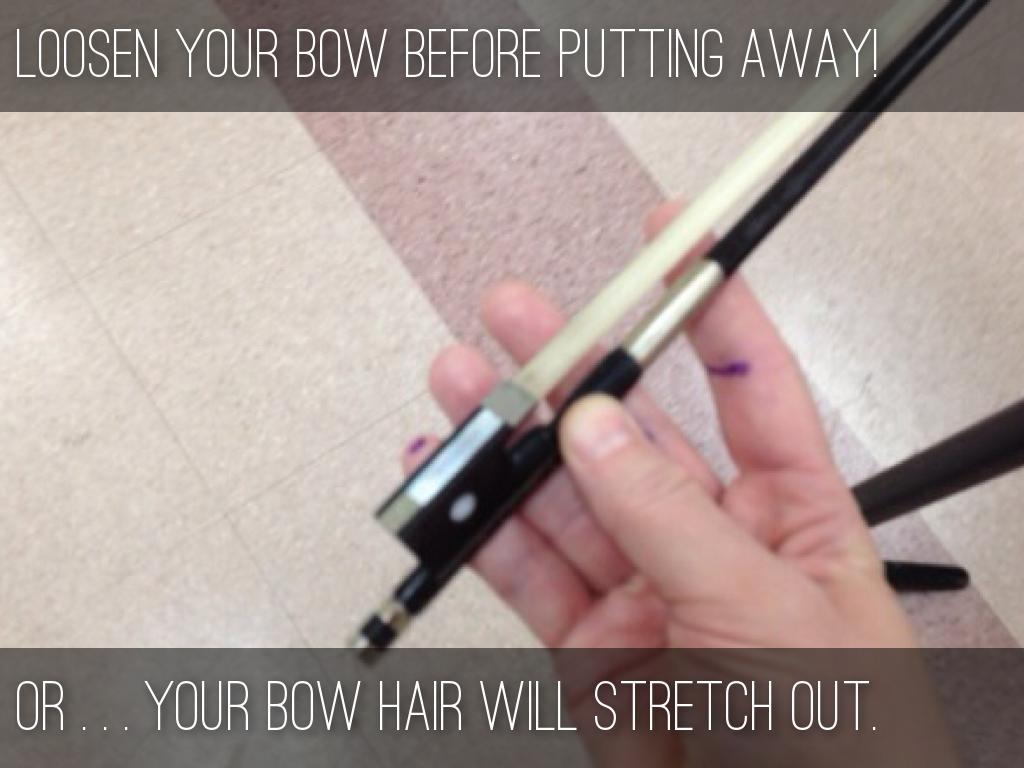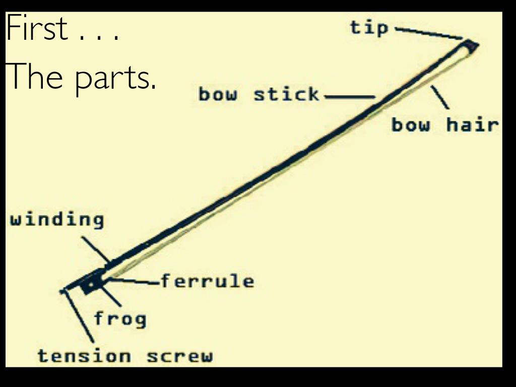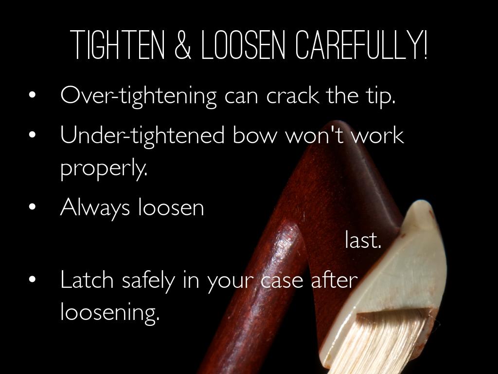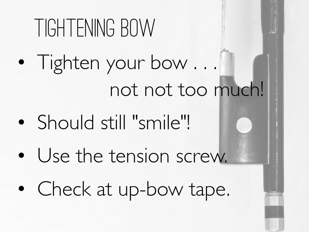 Introductory lesson for teaching students how their bows work for string instruments . . . tightening/loosening and how to use rosin.