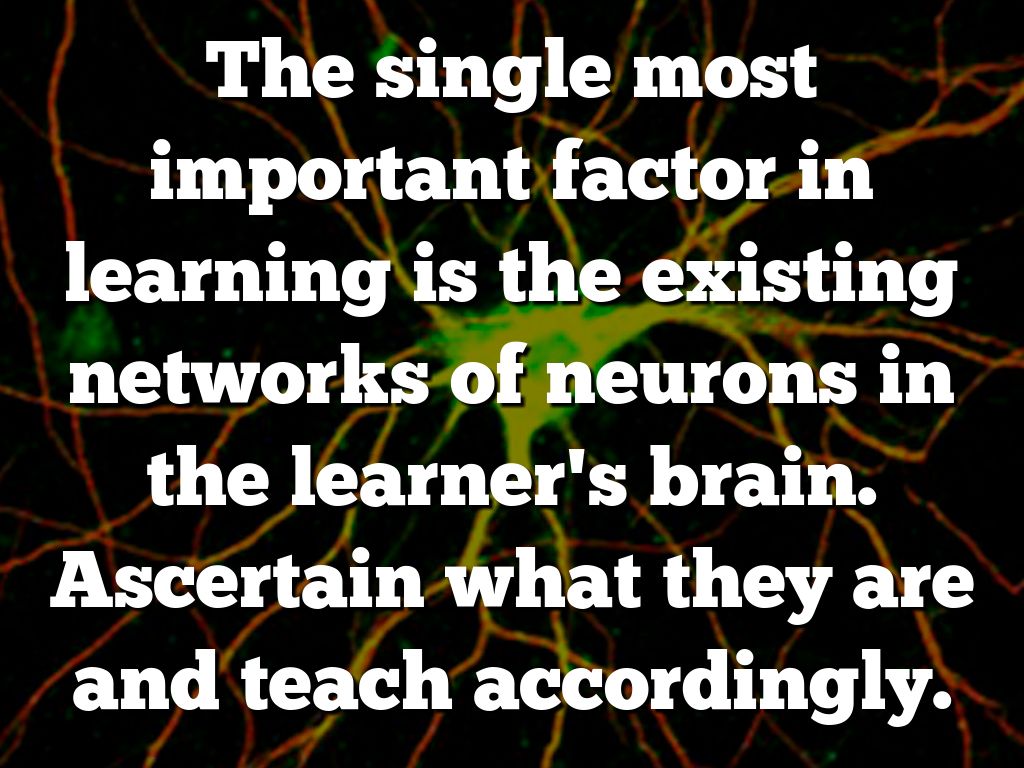 The single most important factor in learning is the existing networks of neurons in the learner’s brain.