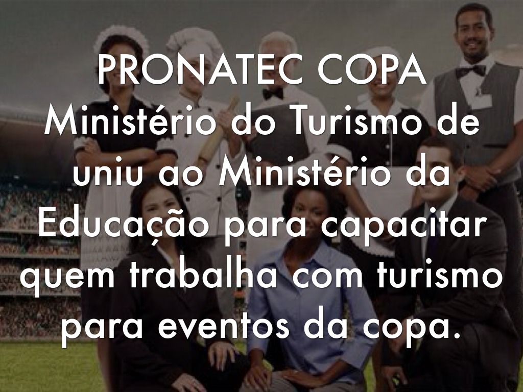 Ministério do Turismo de uniu ao Ministério da Educação para capacitar quem trabalha com turismo para eventos da copa.