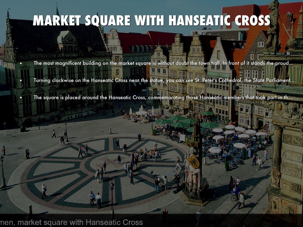 • Turning clockwise on the Hanseatic Cross near the statue, you can see St. Peter's Cathedral, the State Parliament and the Schütting guildhall