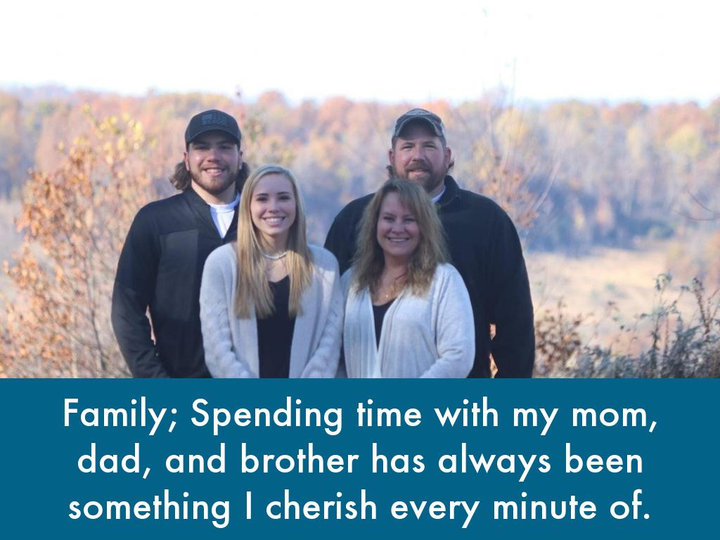 Family; Spending time with my mom, dad, and brother has always been something I cherish every minute of.
