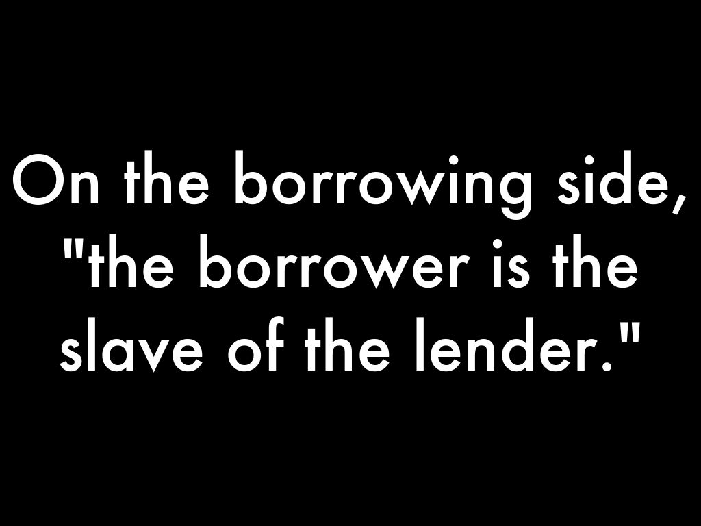 On the borrowing side, "the borrower is the slave of the lender."