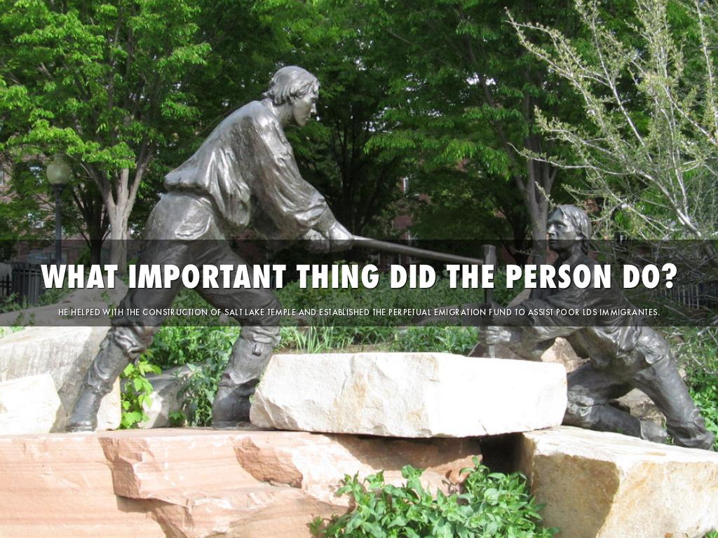 HE HELPED WITH THE CONSTRUCTION OF SALT LAKE TEMPLE AND ESTABLISHED THE PERPETUAL EMIGRATION FUND TO ASSIST POOR LDS IMMIGRANTES.