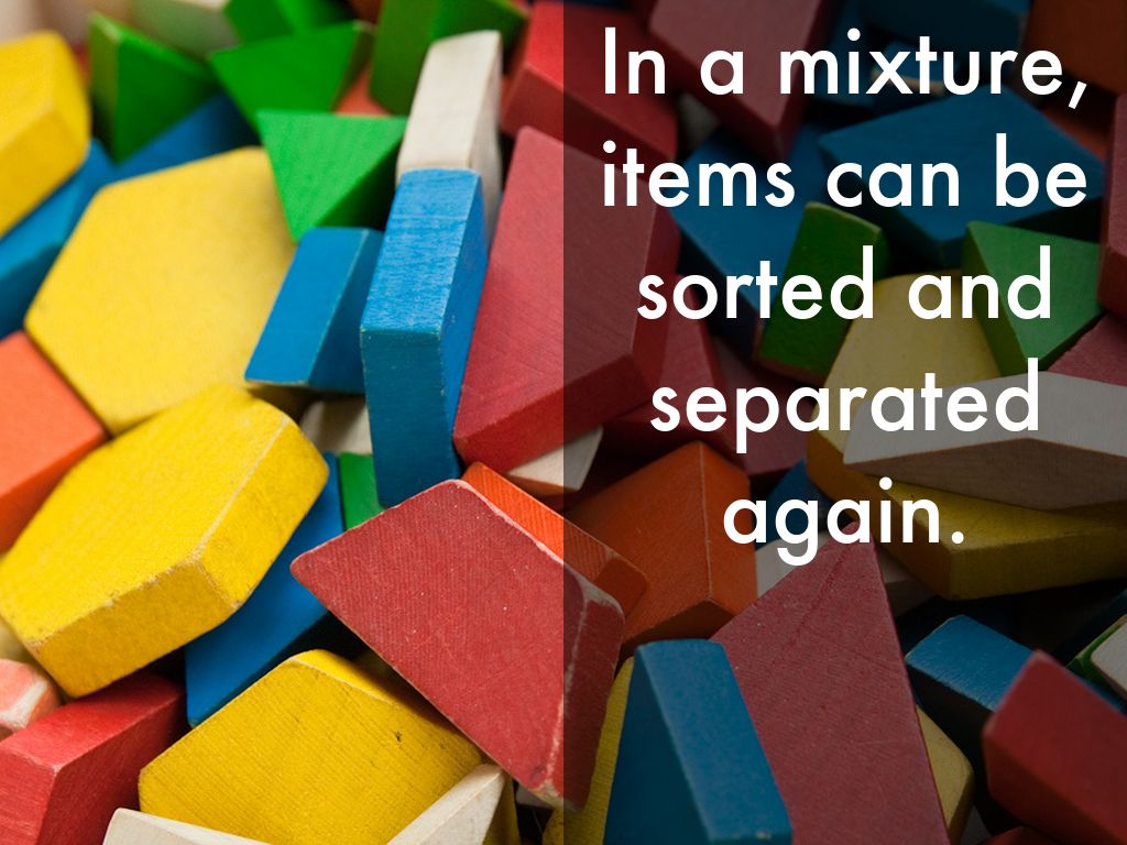 In a mixture, items can be sorted and separated again.