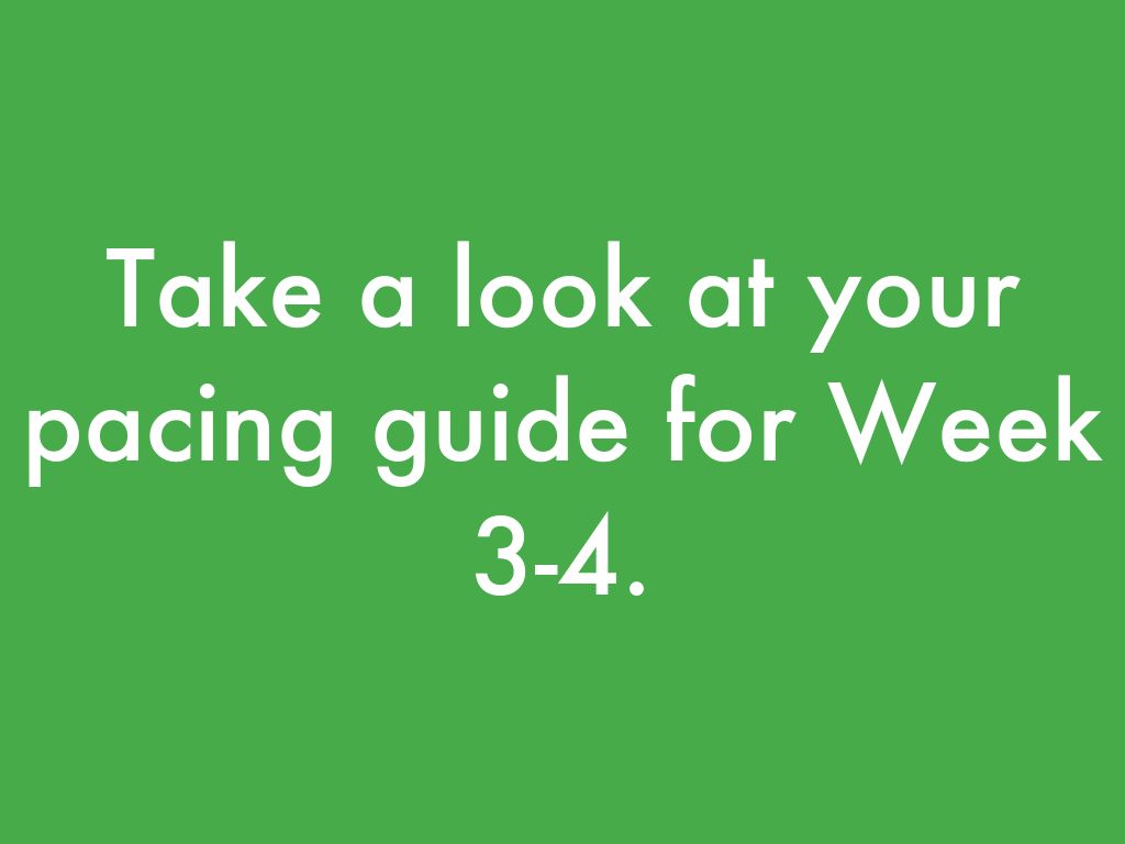Take a look at your pacing guide for Week 3-4.