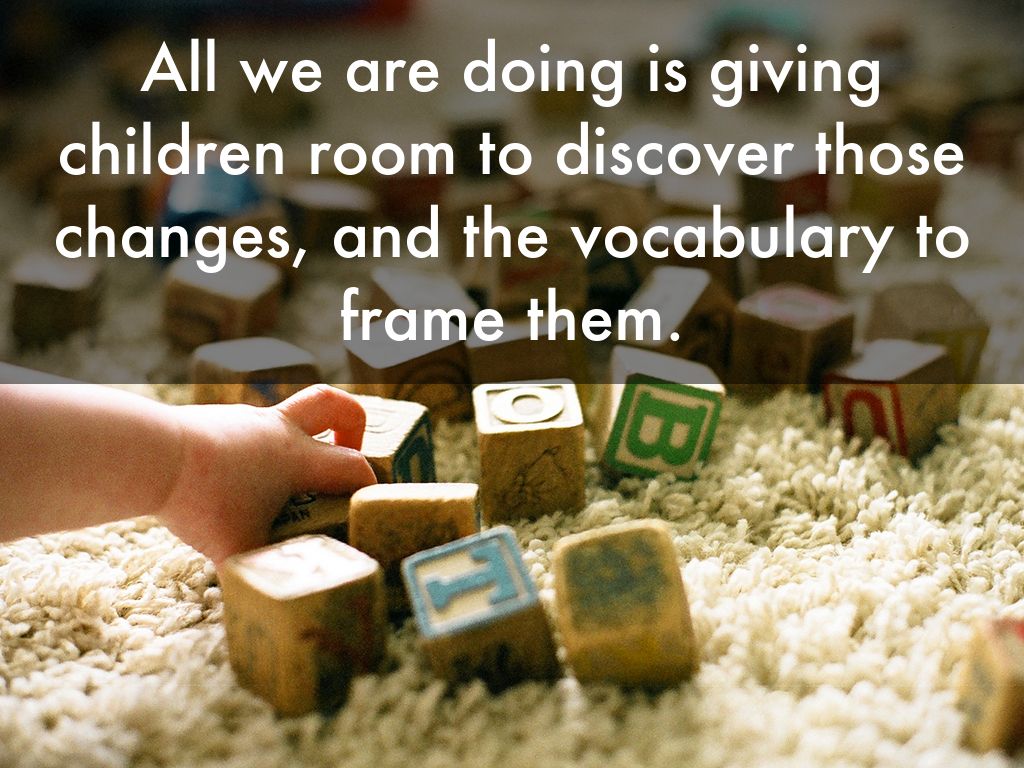 All we are doing is giving children room to discover those changes, and the vocabulary to frame them.