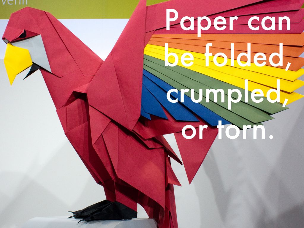 Paper can be folded, crumpled, or torn.