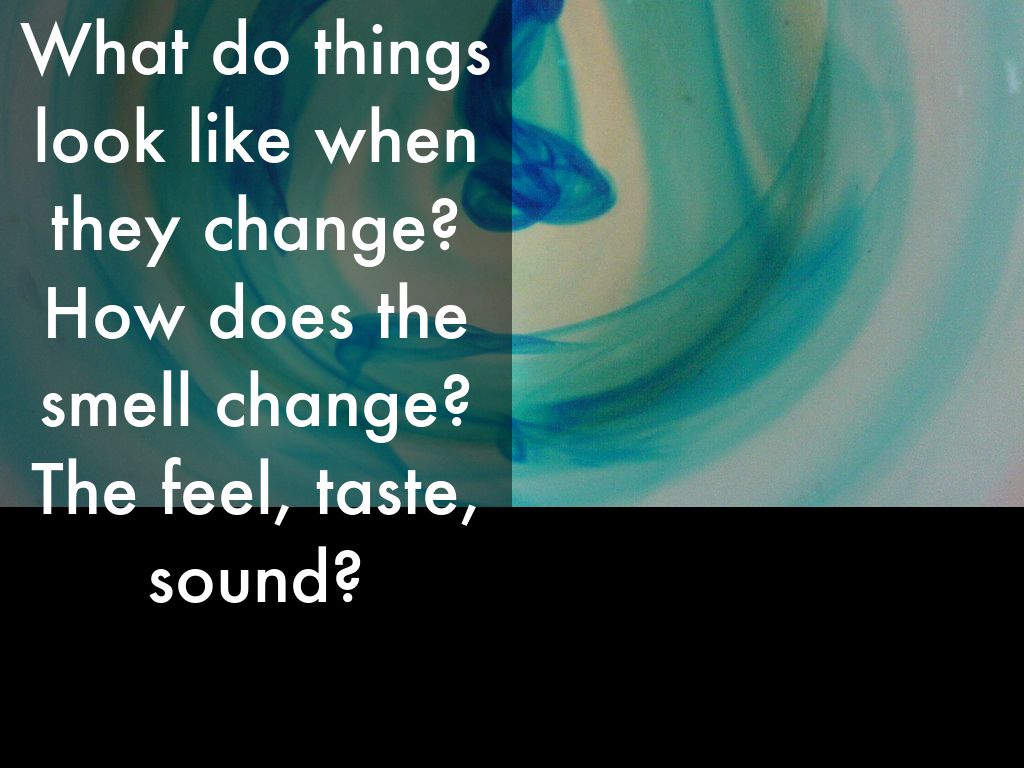 What do things look like when they change? How does the smell change? The feel, taste, sound?