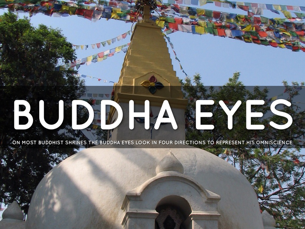 ON MOST BUDDHIST SHRINES THE BUDDHA EYES LOOK IN FOUR DIRECTIONS TO REPRESENT HIS OMNISCIENCE