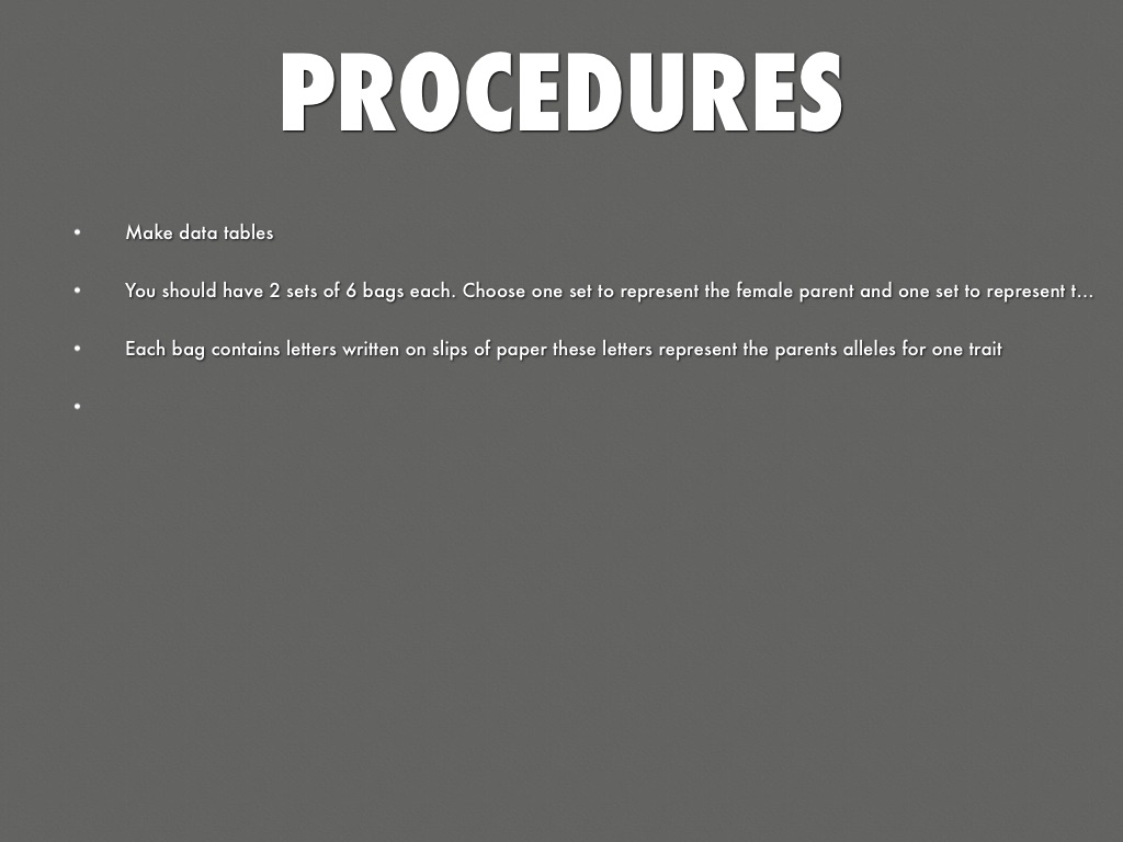 Each bag contains letters written on slips of paper these letters represent the parents alleles for one trait