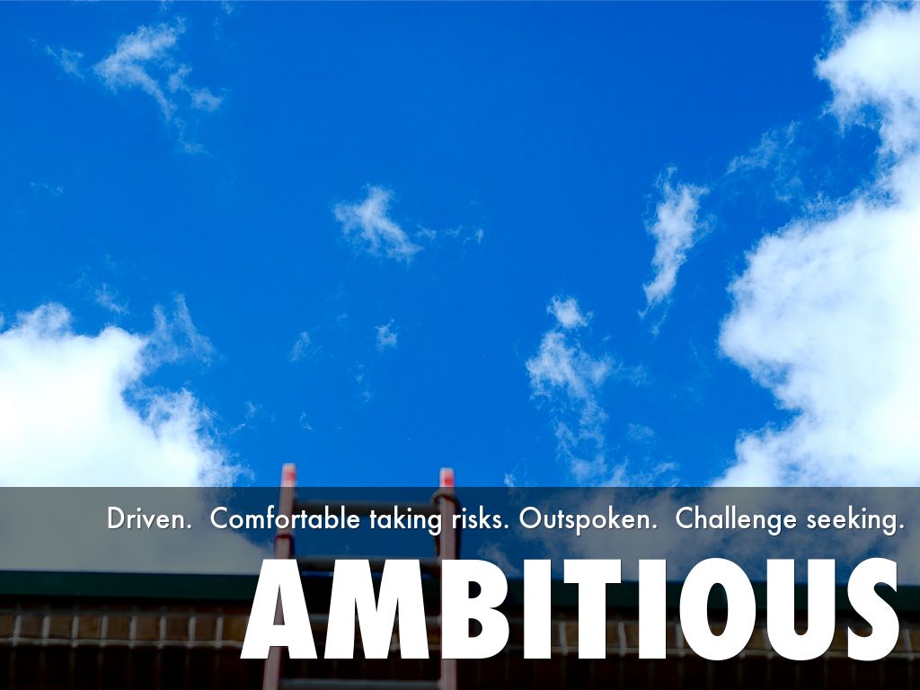 Driven. Comfortable taking risks. Outspoken. Challenge seeking.