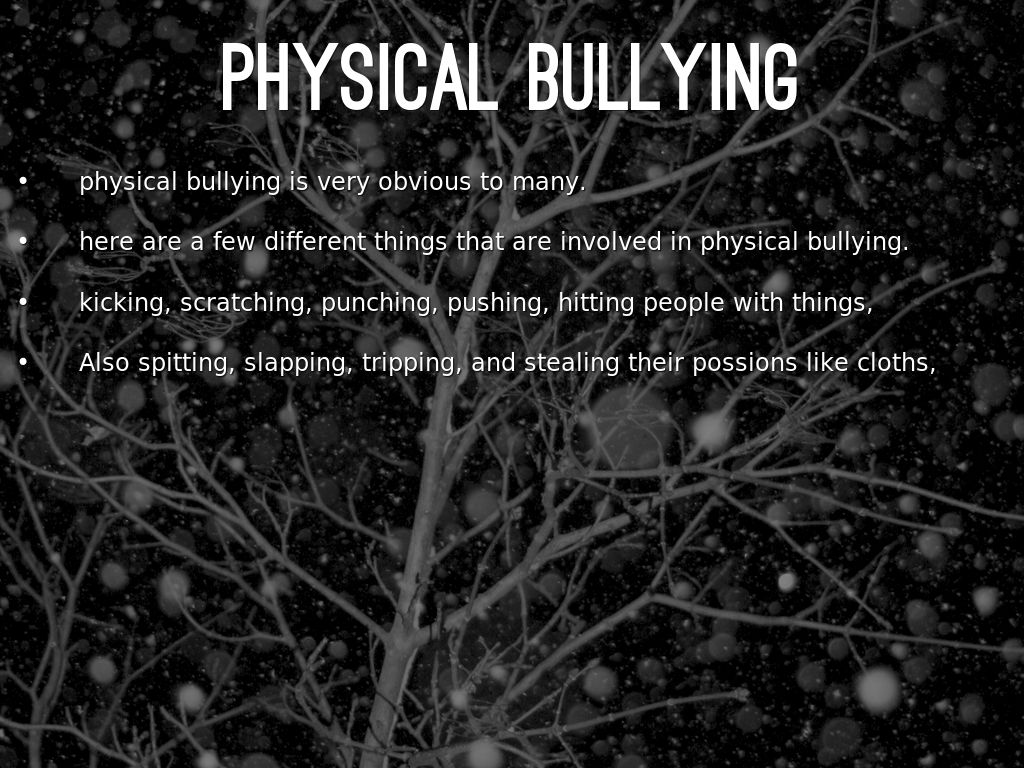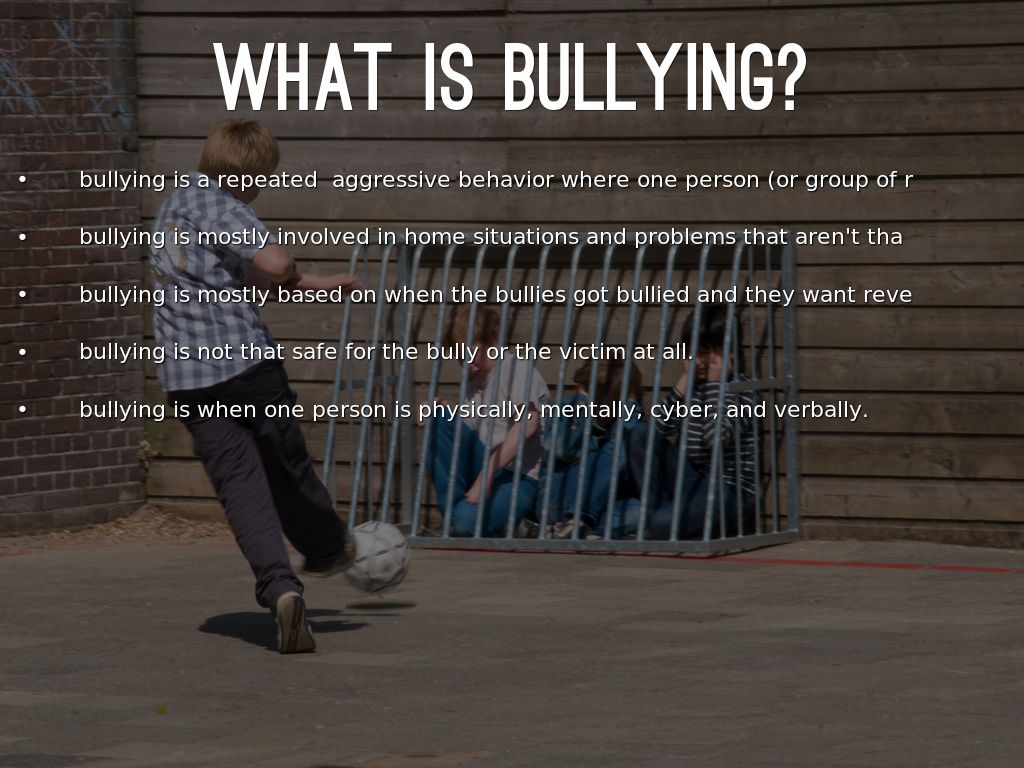 bullying is when one person is physically, mentally, cyber, and verbally.
