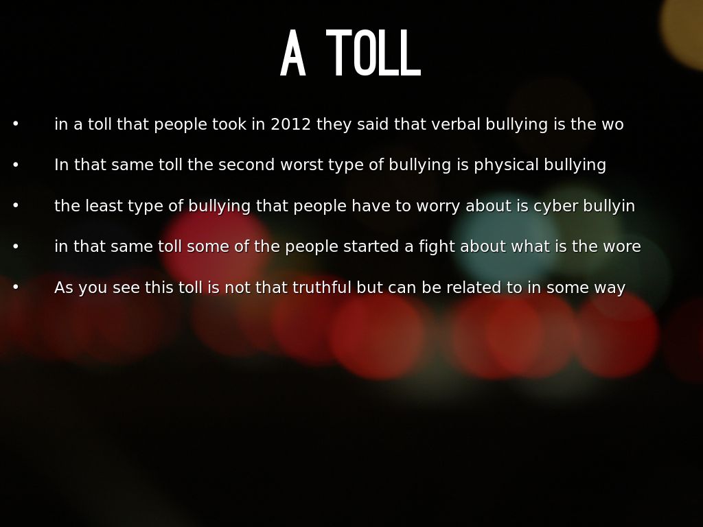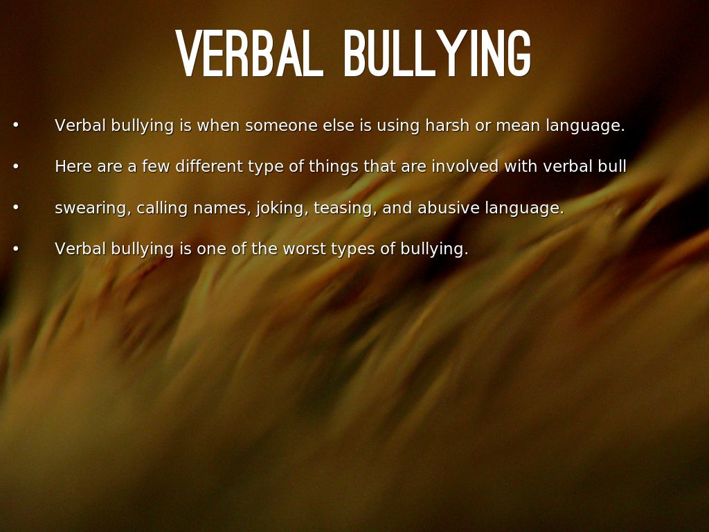in a toll that people took in 2012 they said that verbal bullying is the wo
