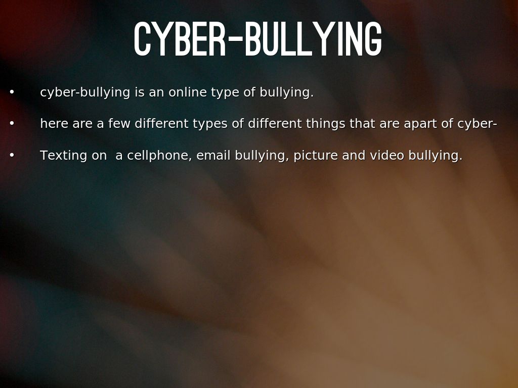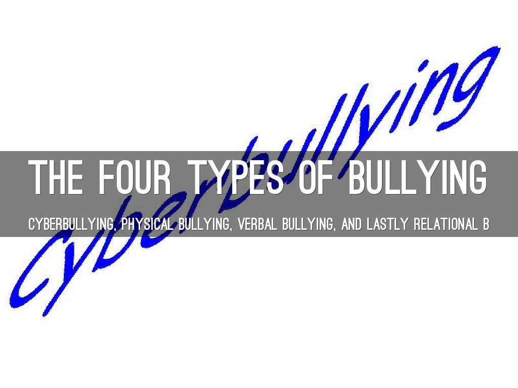 cyberbullying, physical bullying, verbal bullying, and lastly relational b