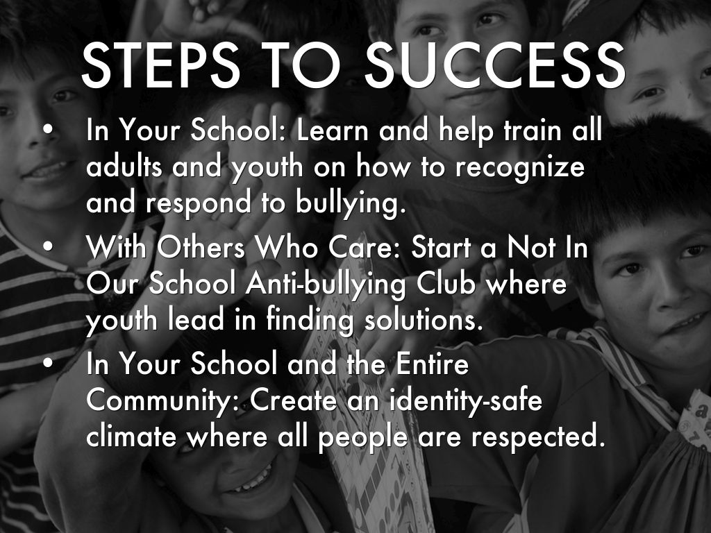 In Your School: Learn and help train all adults and youth on how to recognize and respond to bullying.