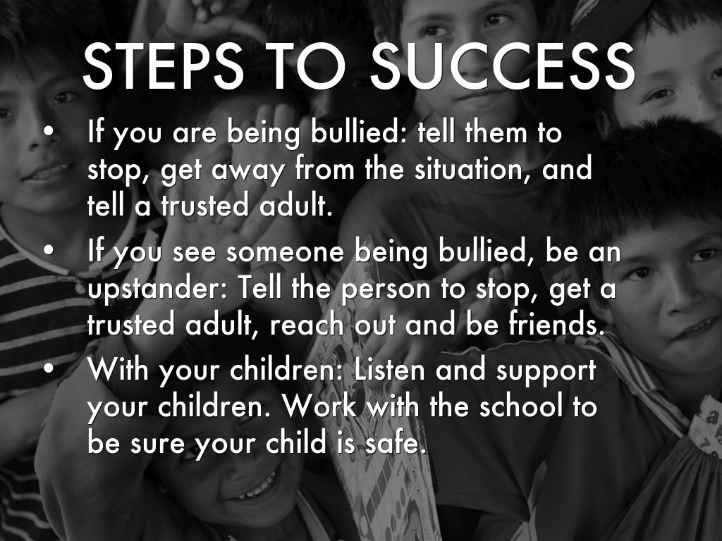 If you are being bullied: tell them to stop, get away from the situation, and tell a trusted adult.