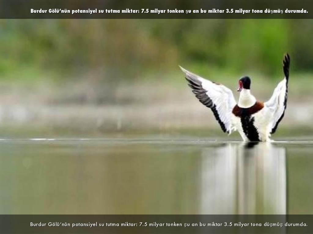 Burdur Gölü’nün potansiyel su tutma miktarı 7.5 milyar tonken şu an bu miktar 3.5 milyar tona düşmüş durumda.