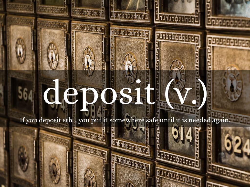 If you deposit sth. , you put it somewhere safe until it is needed again.