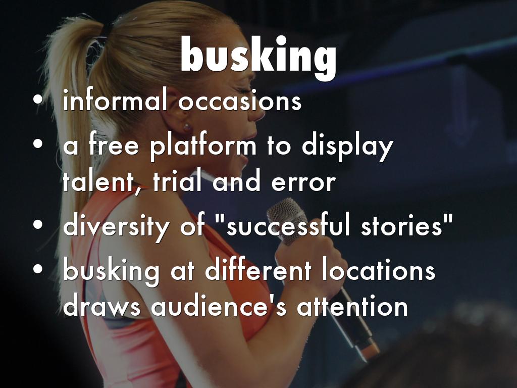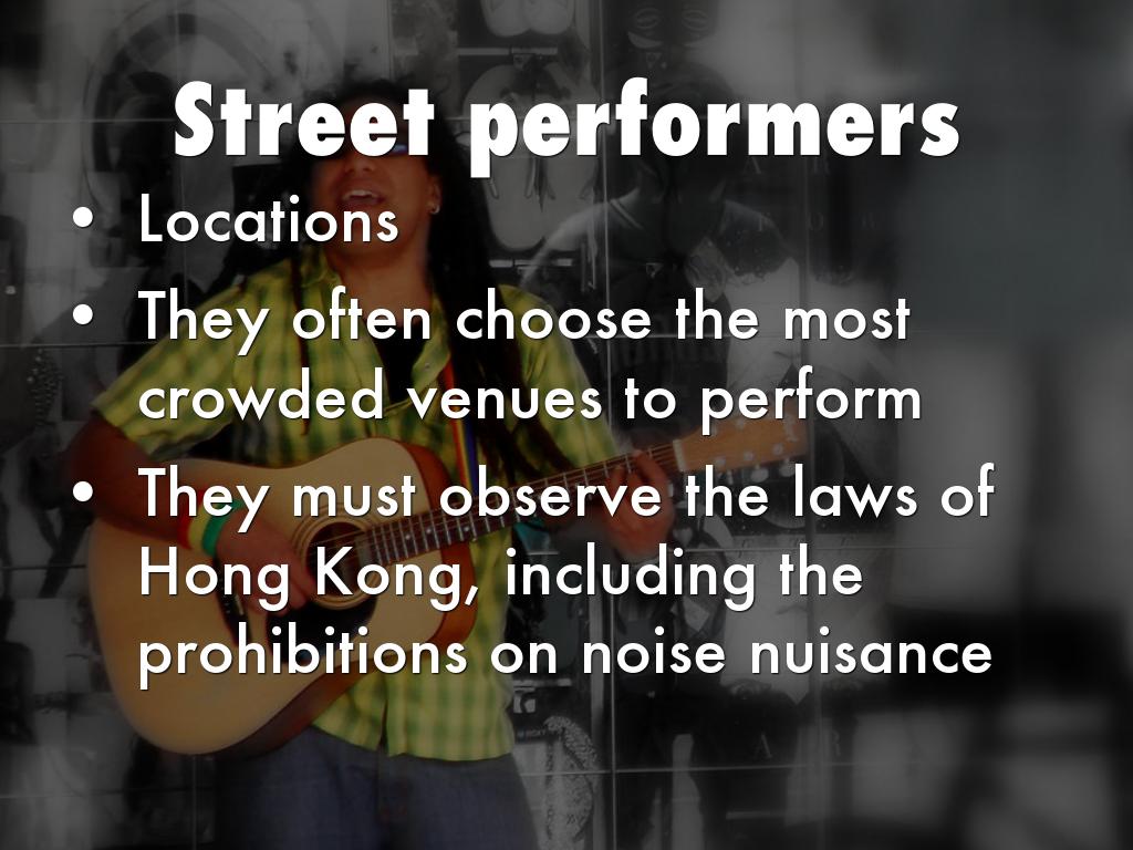one example,most of the music performer success because they had a opportunity to develop their singing skills.hong kong government does not apply any liscening systems because it wants to develop hong kong become diversifcation,which is one of hong kong cultures.busking can reflect hong kong is a melting pot of international cultures.