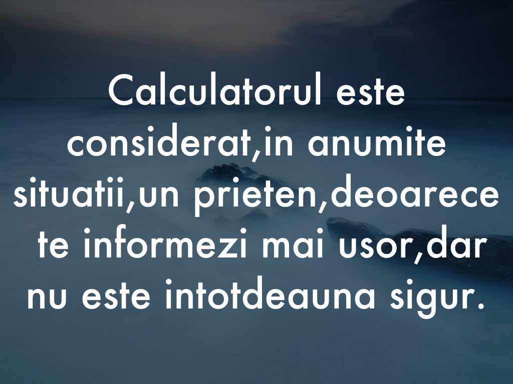 Calculatorul este considerat,in anumite situatii,un prieten,deoarece te informezi mai usor,dar nu este intotdeauna sigur.