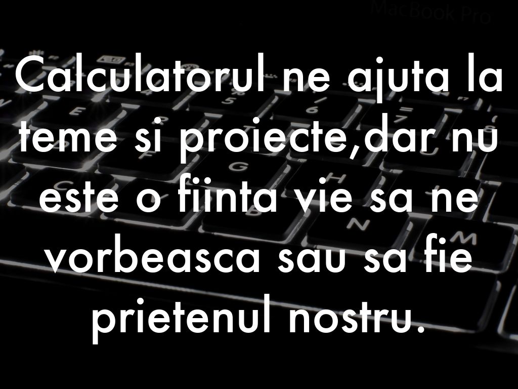 Calculatorul ne ajuta la teme si proiecte,dar nu este o fiinta vie sa ne vorbeasca sau sa fie prietenul nostru.