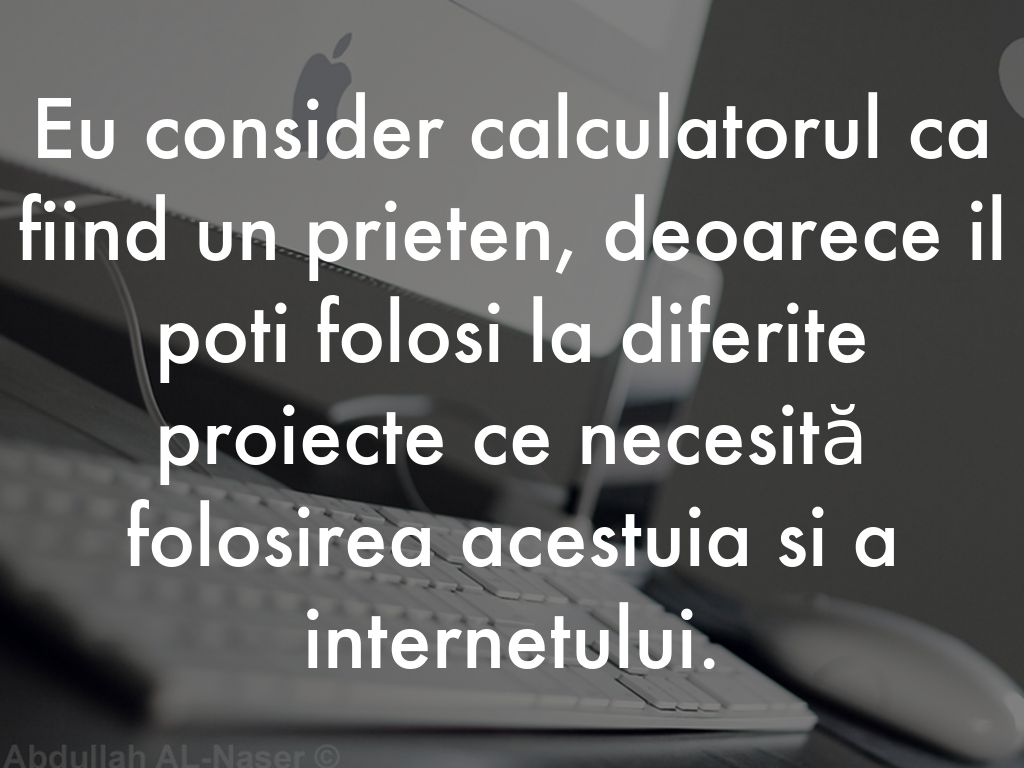 Eu consider calculatorul ca fiind un prieten, deoarece il poti folosi la diferite proiecte ce necesită folosirea acestuia si a internetului.
