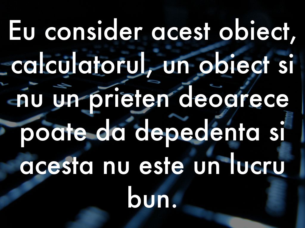 Eu consider acest obiect, calculatorul, un obiect si nu un prieten deoarece poate da depedenta si acesta nu este un lucru bun.