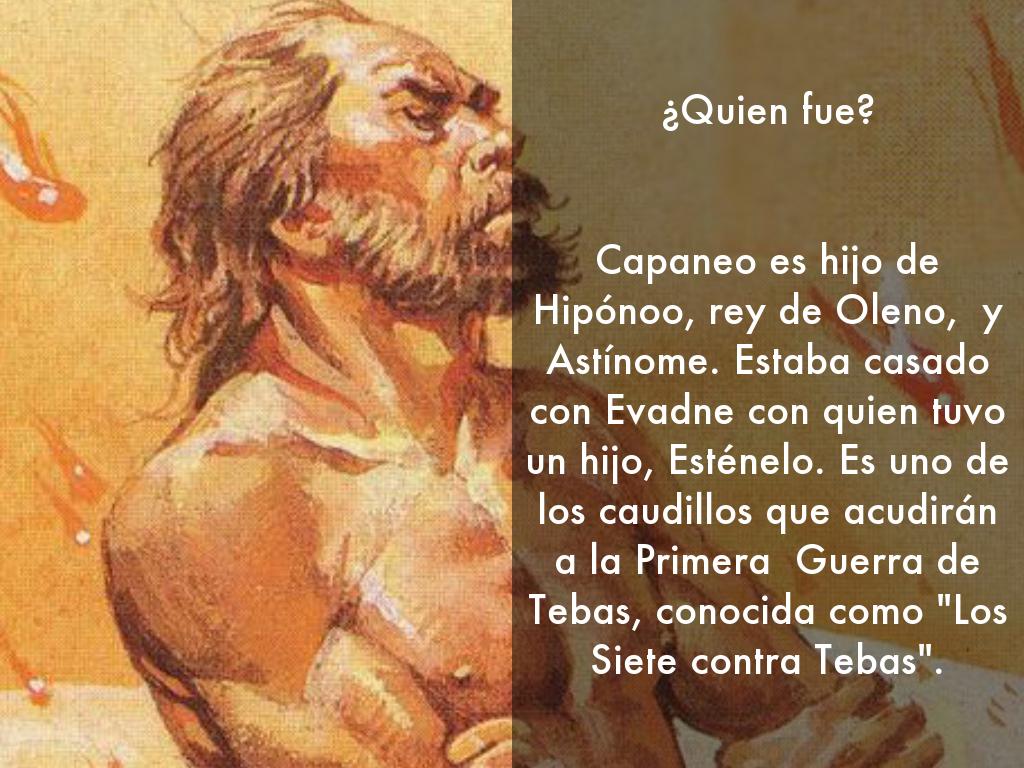 "Capaneo, hijo de Hipónoo y de Astínome, hija de Tálao, hermana de Adrasto, argivo."