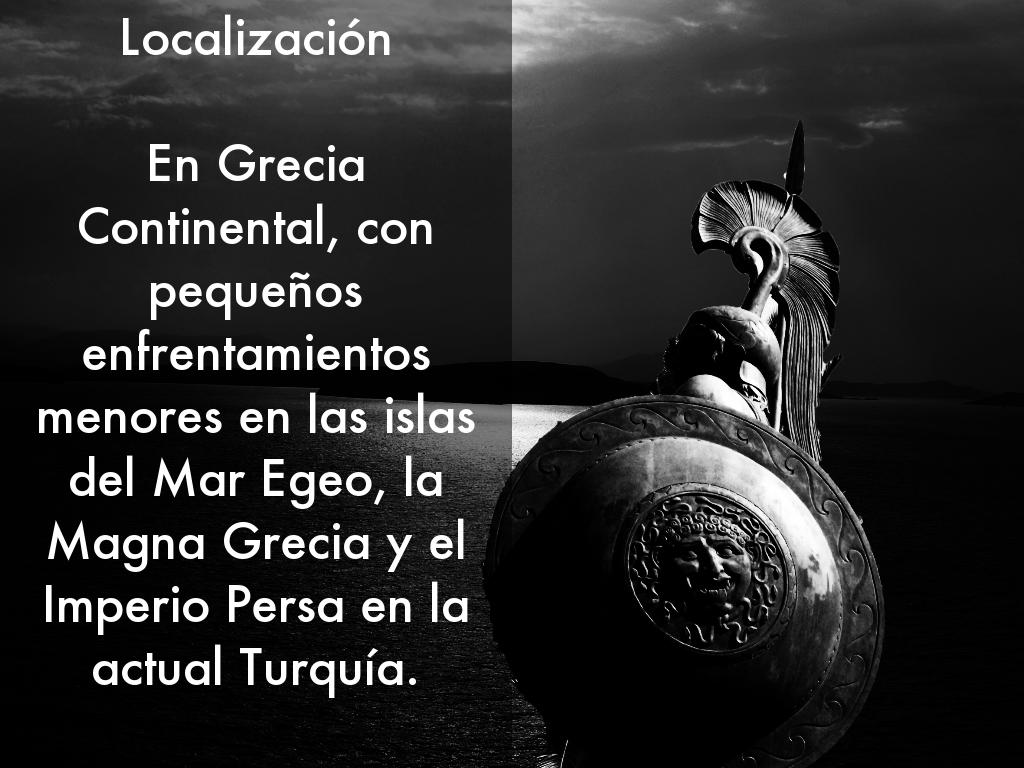 En Grecia Continental, con pequeños enfrentamientos menores en las islas del Mar Egeo, la Magna Grecia y el Imperio Persa en la actual Turquía.