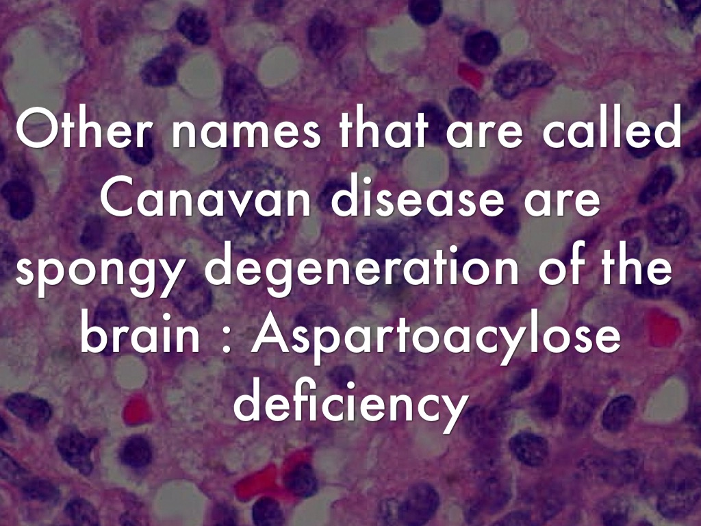 Other names that are called Canavan disease are spongy degeneration of the brain : Aspartoacylose deficiency