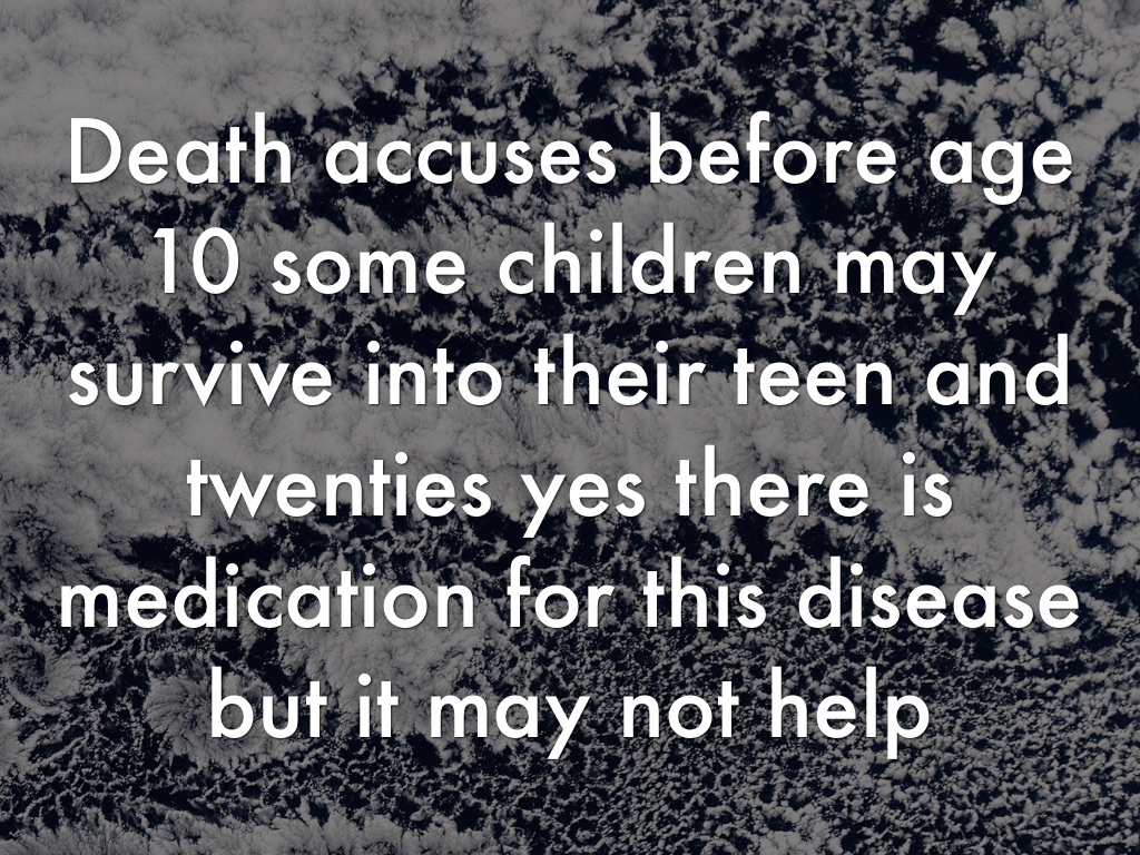 Death accuses before age 10 some children may survive into their teen and twenties yes there is medication for this disease but it may not help