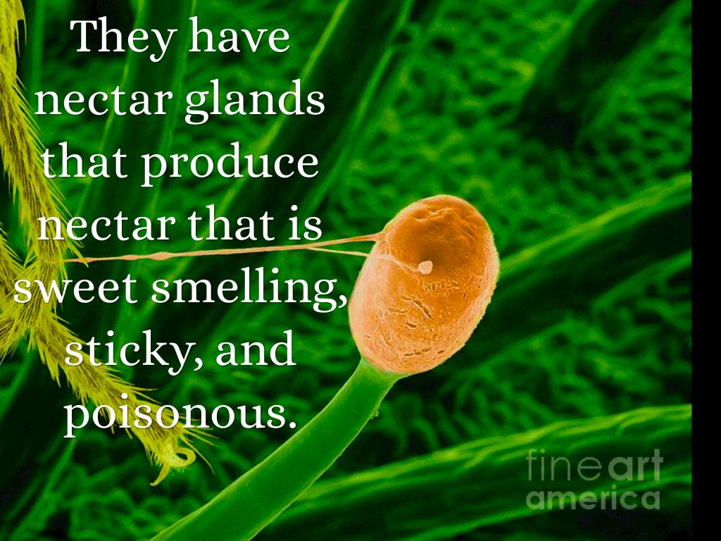They have nectar glands that produce nectar that is sweet smelling, sticky, and poisonous.