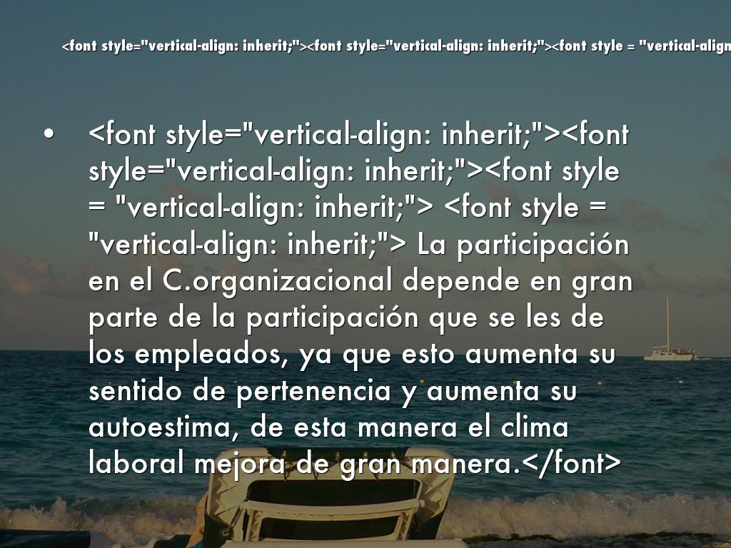 La participación en el C.organizacional depende en gran parte de la participación que se les de los empleados, ya que esto aumenta su sentido de pertenencia y aumenta su autoestima, de esta manera el clima laboral mejora de gran manera.
