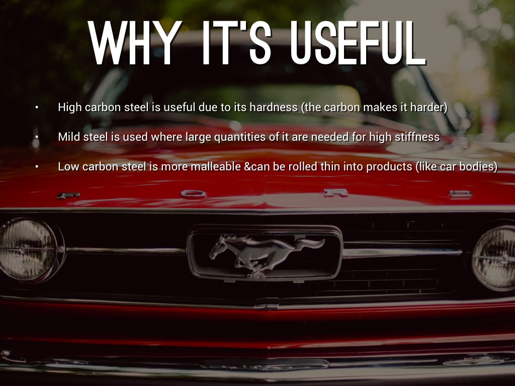 High carbon steel is useful due to its hardness (the carbon makes it harder)