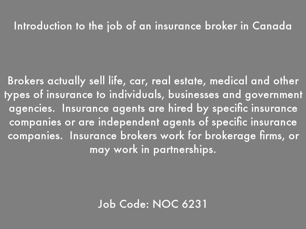 Introduction to the job of an insurance broker in Canada