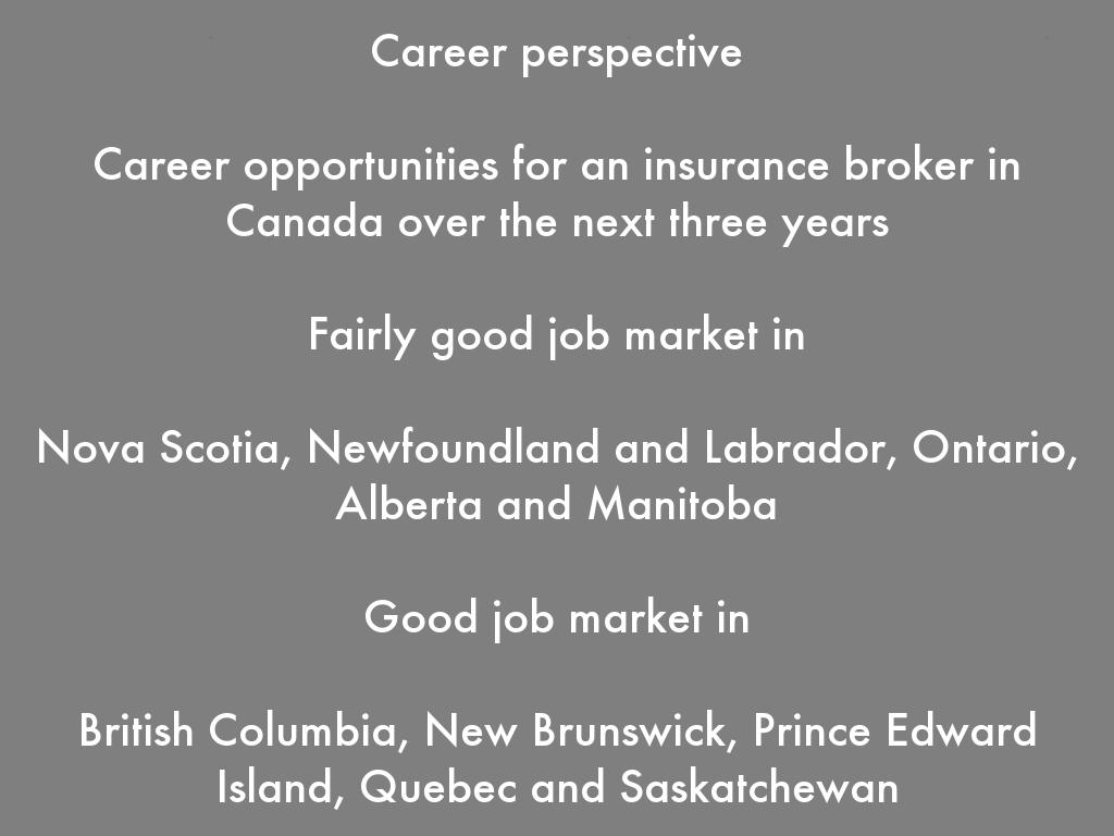 Career opportunities for an insurance broker in Canada over the next three years