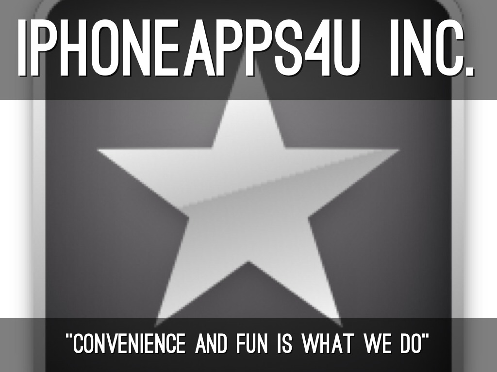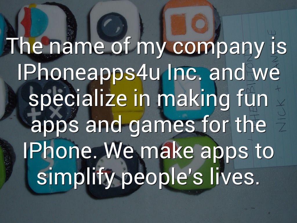 The name of my company is IPhoneapps4u Inc. and we specialize in making fun apps and games for the IPhone. We make apps to simplify people's lives.