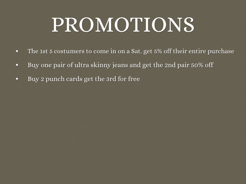 The 1st 5 costumers to come in on a Sat. get 5% off their entire purchase