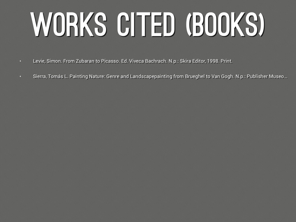 • Levie, Simon. From Zubaran to Picasso. Ed. Viveca Bachrach. N.p.: Skira Editor, 1998. Print.