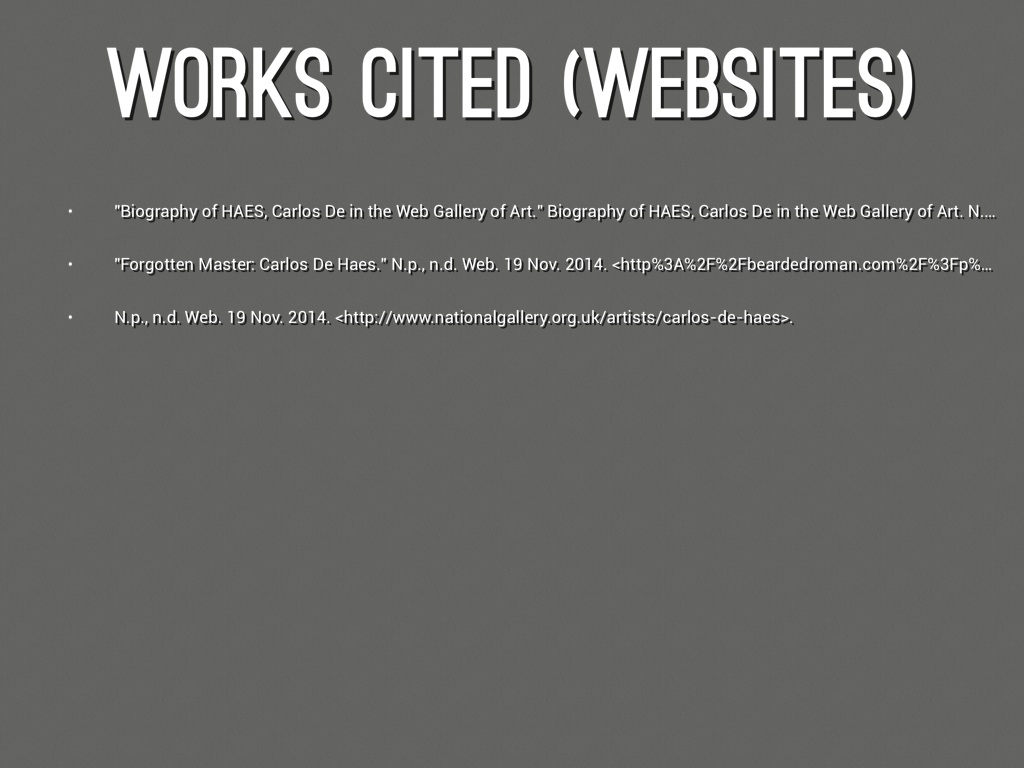 • "Forgotten Master: Carlos De Haes." N.p., n.d. Web. 19 Nov. 2014.