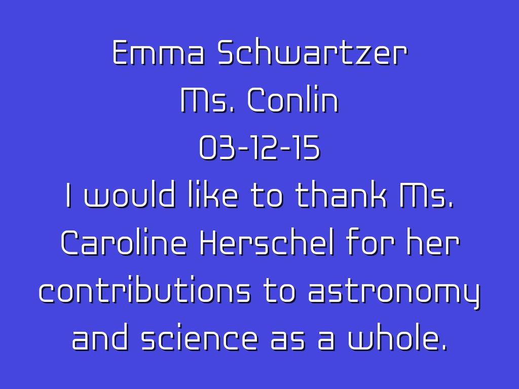 I would like to thank Ms. Caroline Herschel for her contributions to astronomy and science as a whole.